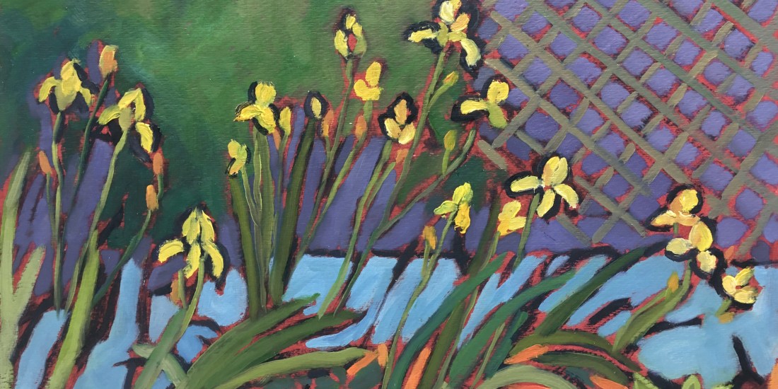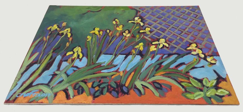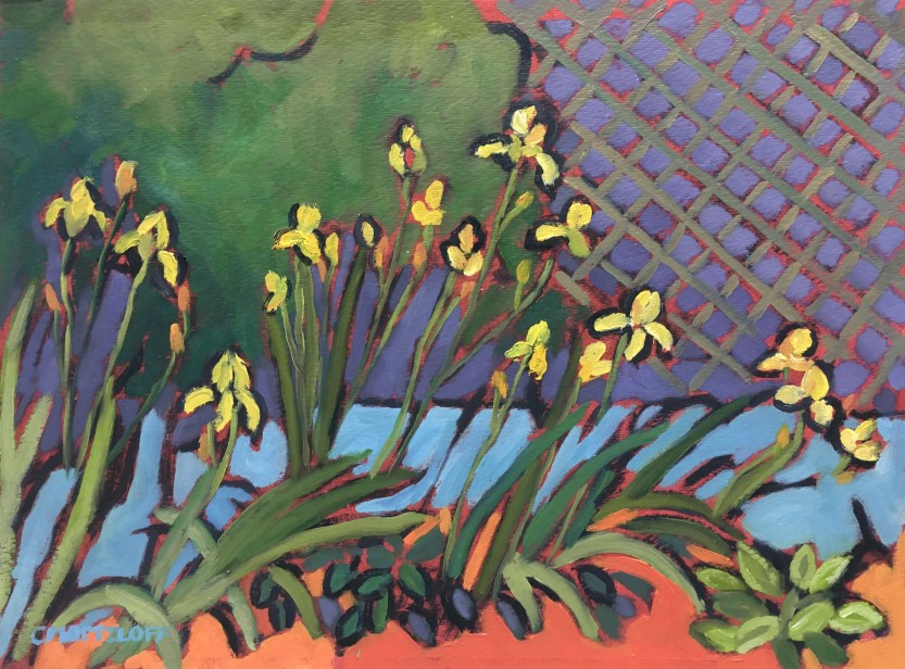 Curious minds ….. Was that cross-hatched fence in the background or did you put that in off the top of your head? I looked at this painting a long time just mesmerized. I’m missing flowers already and Winter isn’t even here yet, Cathy.