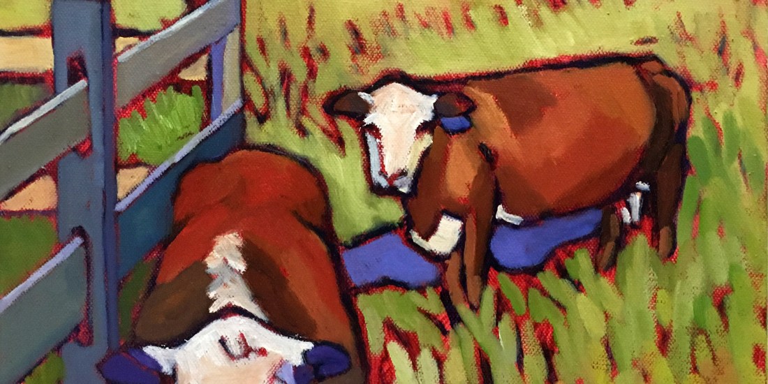 What ended up inspiring this painting was a stroll through some of old photographs. I’ve always taken photos of the landscape and nature. There was a time when I thought I might pursue photography but it wasn’t my first love as things turned out. In my curiosity going through the old albums, I came across some photos of farmland and cows that were taken on a drive many years ago with one of my sisters. I remember these cows and the desire to get close. We stopped the car to do so and then with the hope of savoring the moment my camera came out.