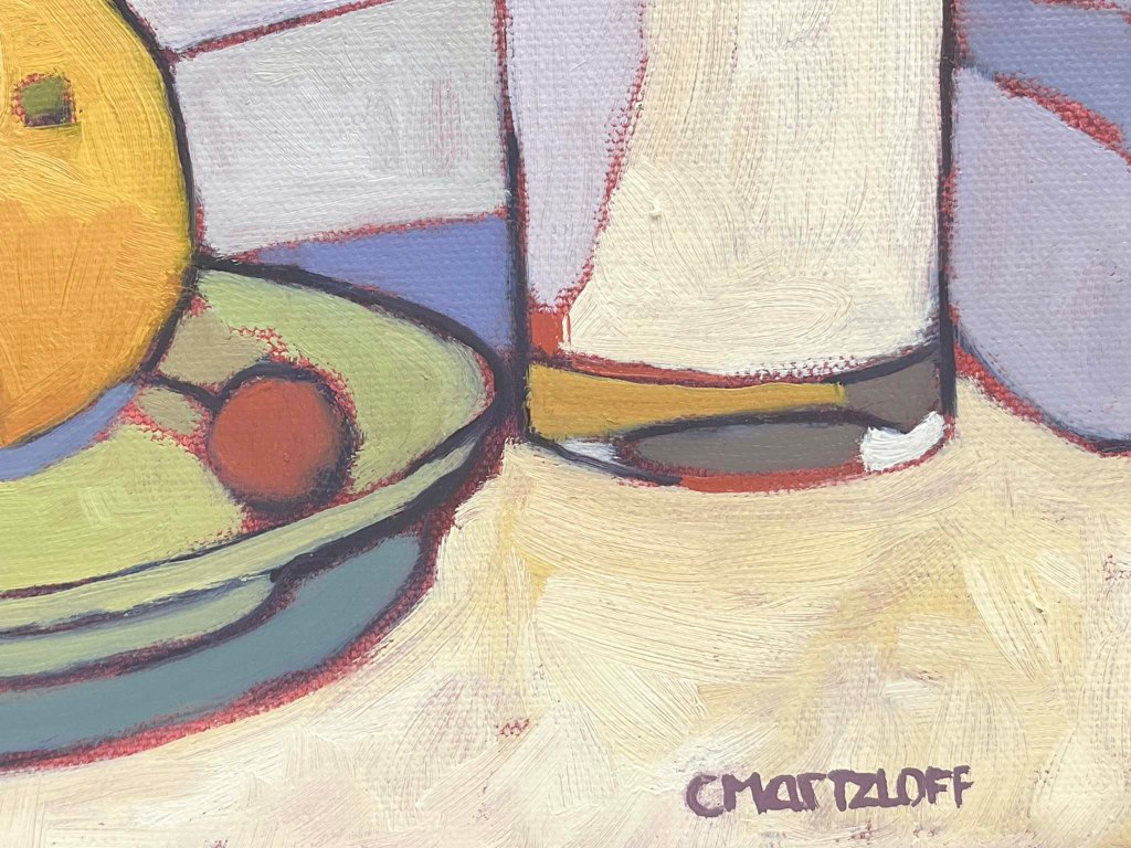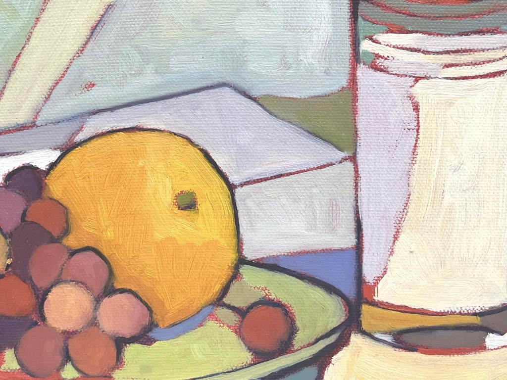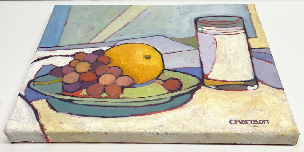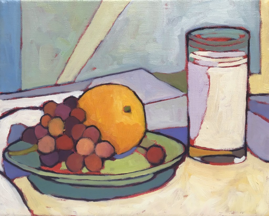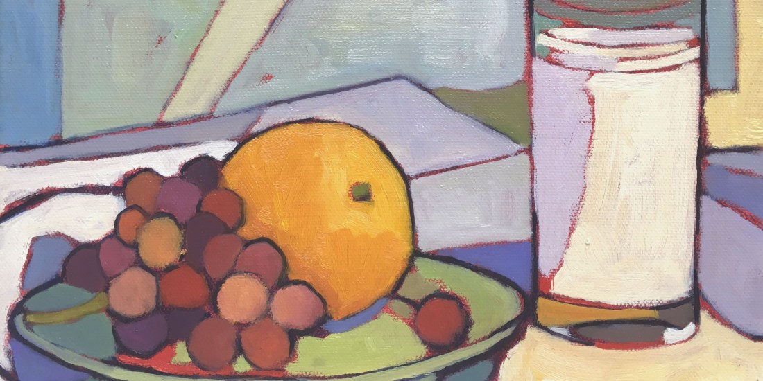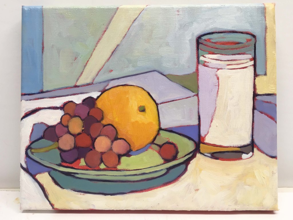 Inspiration for me in creating a still life painting often comes from things like fruit or kitchen wares. I’m convinced it’s the tie to creation. The kitchen is a creative space – or can be. Incorporating things like fruit connects me to a sense of opportunity and immediacy. I can’t think too long because time is “ticking”. Fresh produce starts to change and decompose so to capture it in it’s fullness and most brilliant states I need to act.