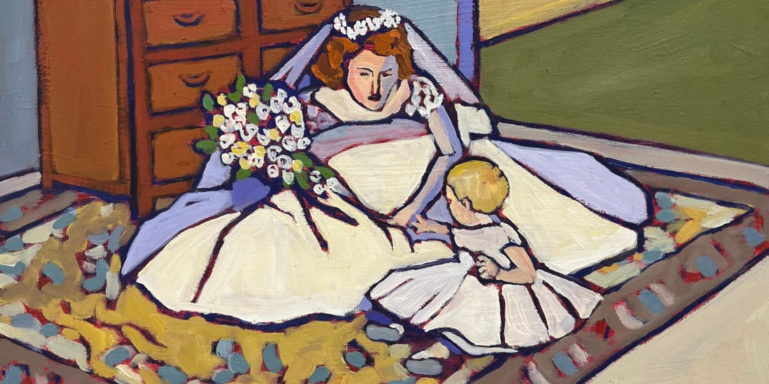 This painting captures a wedding day moment I’ve only been able to witness through photographs. It’s my mother’s wedding day. My mother died suddenly when I was 24 and we had a challenging relationship. Sometimes it’s been hard to look at these photos because of the memories and feelings of loss. In looking at the album it brought to life that she was only 23 in the picture, with so much life in front of her and would have 3 daughters of her own.