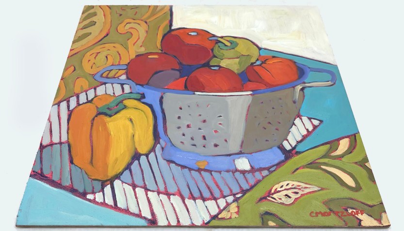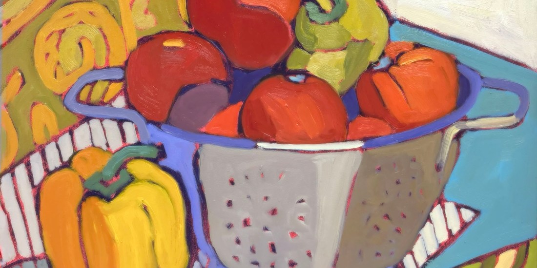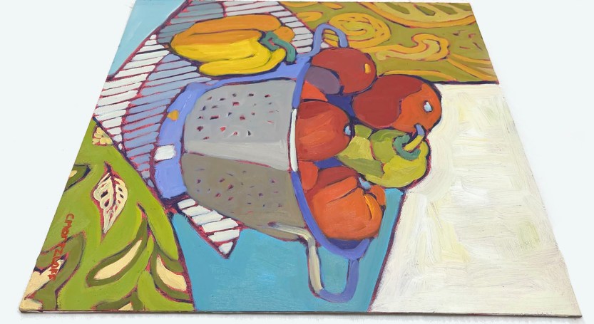 Hearty Vegetable Mosaic – 12″ x 12″ Oil on panel $650