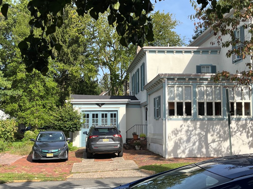 Another trip down history lane in Bordentown, NJ. There are many magnificent historic homes and buildings in Bordentown. That’s one of the things I like about painting here. In this painting I chose to capture the rear entrance to a gorgeous home on the corner of Park Street and Farnsworth Avenue. It’s a light cream colored stucco with colonial blue shutters and gorgeous ironwork. I loved the ambiance of the home but was drawn to the small cozy entryway in the back with the car in the driveway.