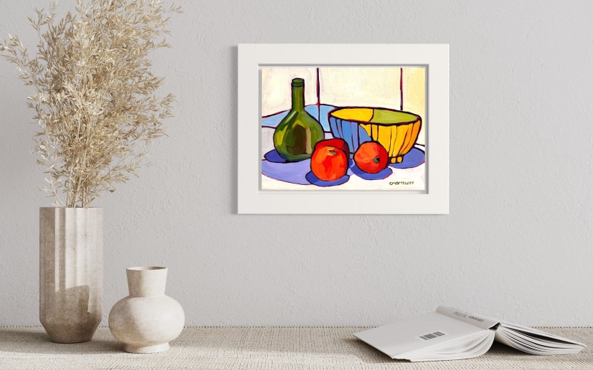 The beauty of a still life will always enchant me. I love taking simple objects and letting them speak to me when it comes to addressing the canvas. This painting is a reflection of simplicity that I identify with. It reminds me that the more I simplify my life the clearer and more vibrant my life becomes. Space unfolds and begins to allow new experiences. In the context of this painting the colors have room to express their nature in a way that is imaginative but connected to reality.