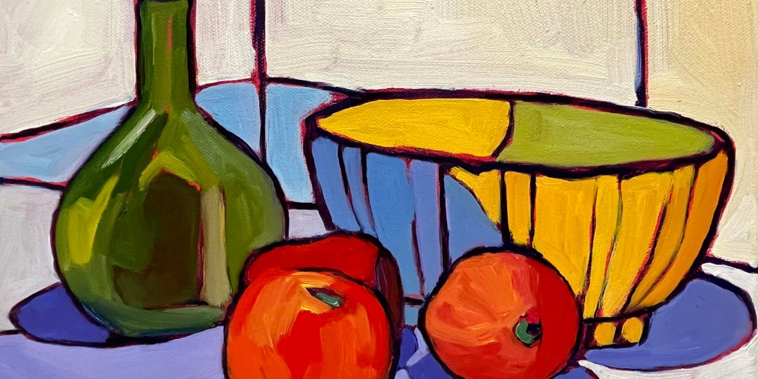 I hope you enjoy this simple treasure of “Symbolic Lines”. My hope is that the viewer has a new experience with color and still life painting.