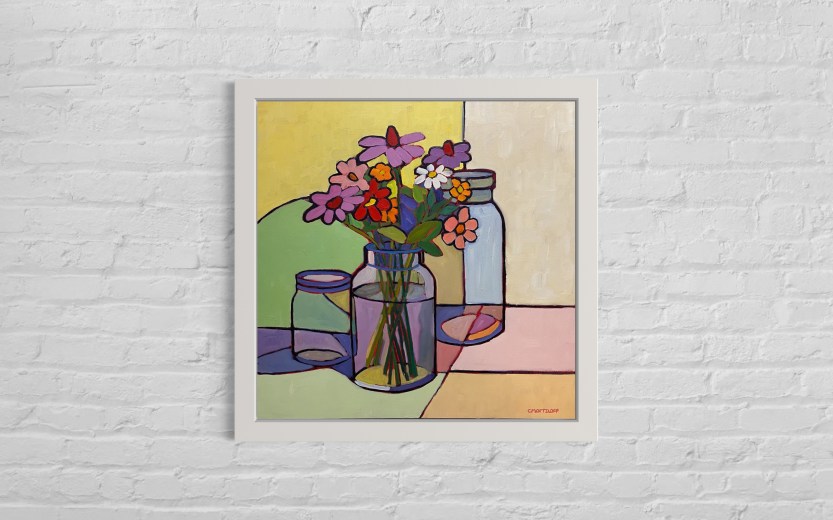 The skies may be grey and the trees absent of leaves but the joyful spirit of colorful flowers remain in my studio.