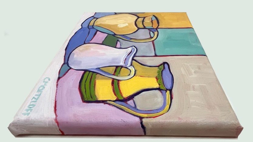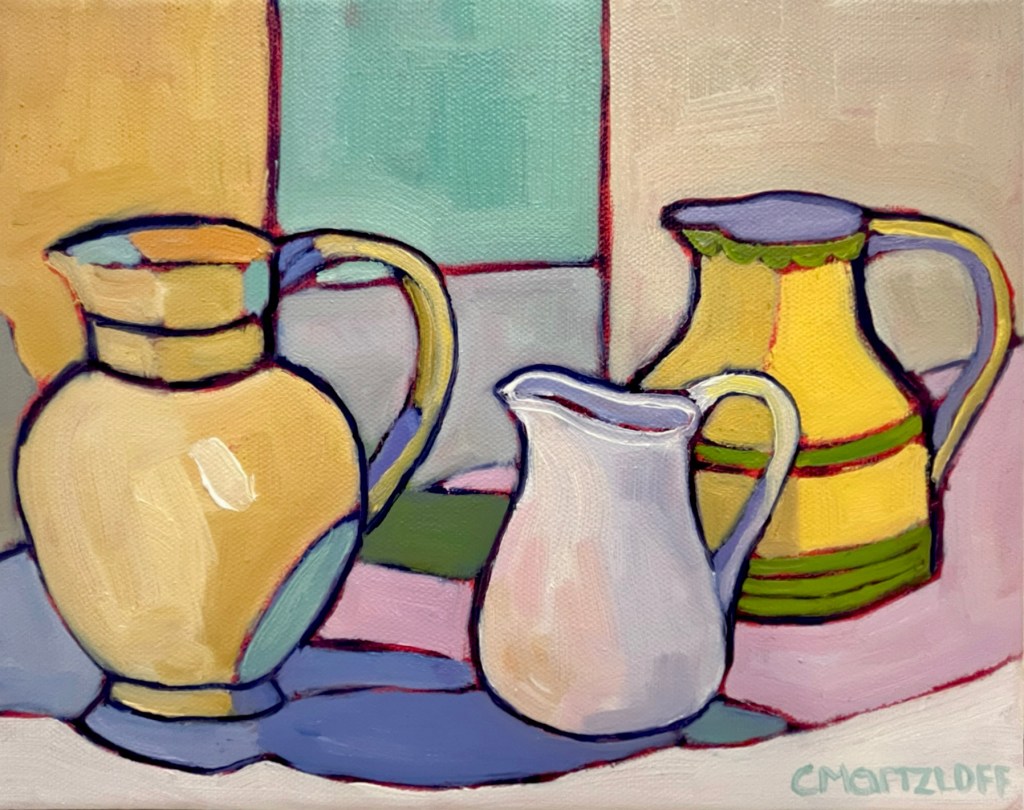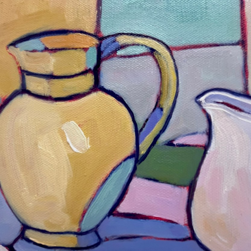 In painting this I connected with the vessels being empty and receivers of something new and yet to be determined. The palette has a spring-like flavor to it and reminded me that the season of winter will soon pass. I hope this stirs some stories for you and inspires a sense of wonder.