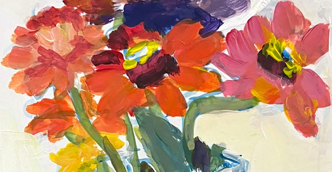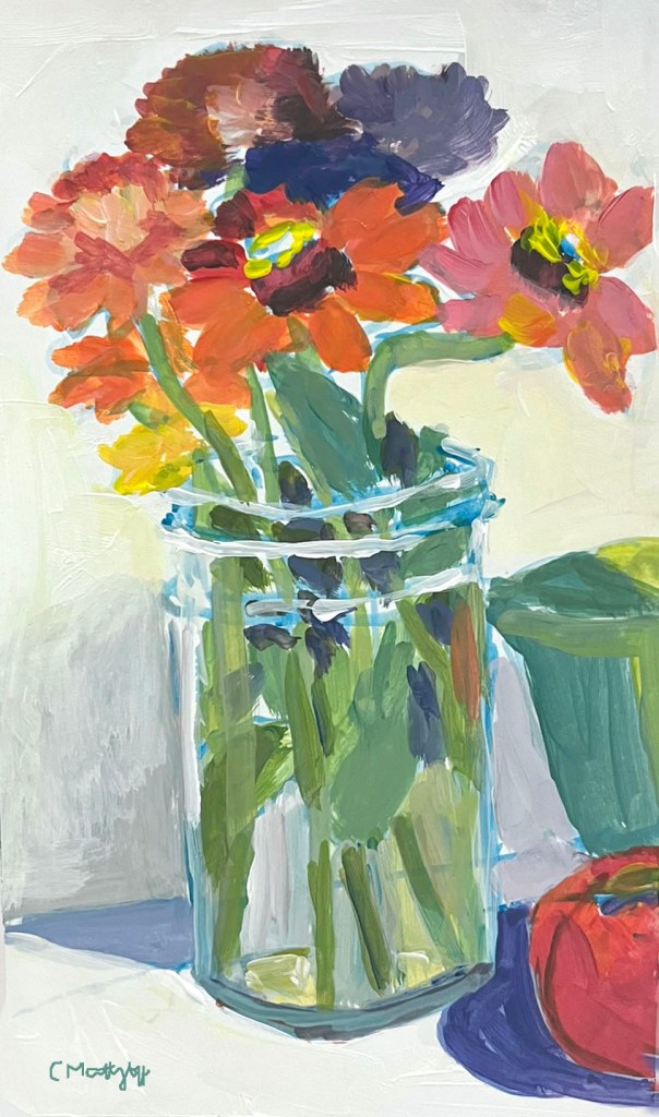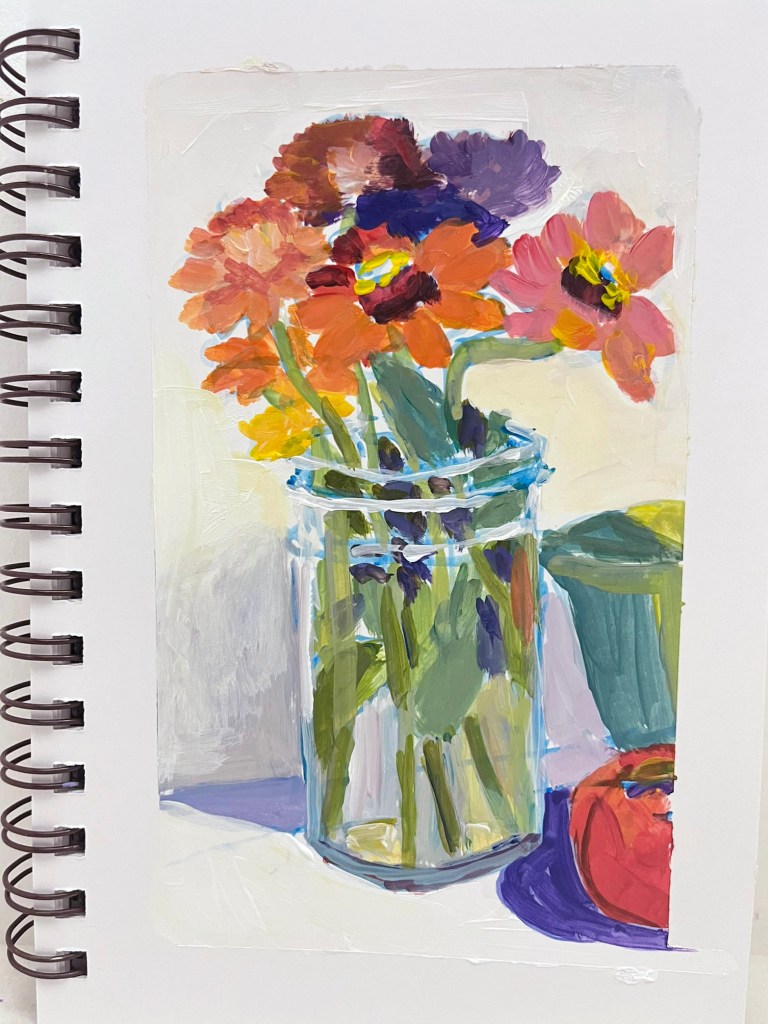 Here’s an image from the set up I was working from in my studio. The arrangement also became the subject for a small oil painting which you can see “Vibrant Summer Afternoon”.