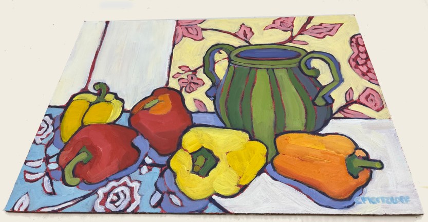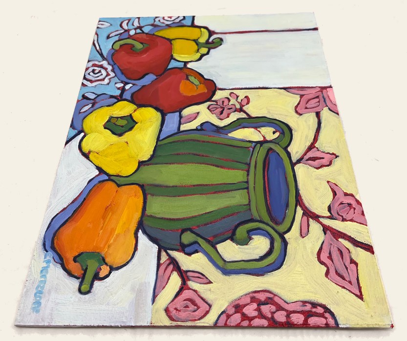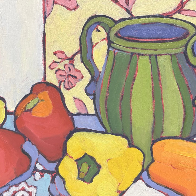 I often look to humble ingredients like fruits and vegetables to explore color, shape, and mood in new ways. Influences from Cézanne, Matisse, and Münter quietly echo through my process—each one a reminder of how everyday subjects can carry deep poetry.