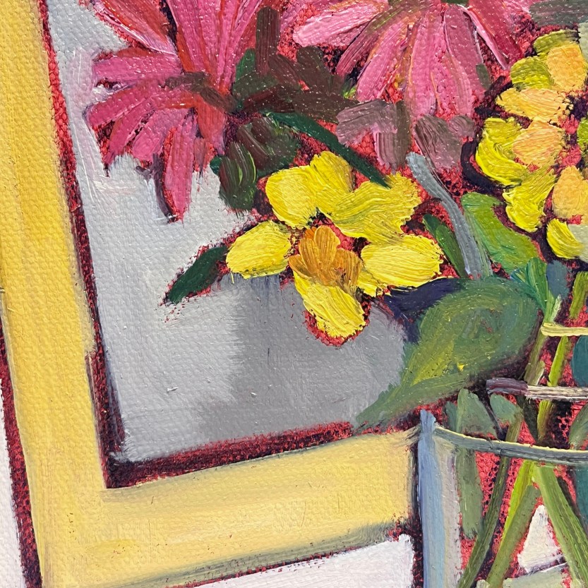 If Paint Box Bouquet brings to mind your own garden moments, I’d love to hear. Feel free to comment or reach out through my contact page. This original painting is available—please message me directly if you’d like more details.
