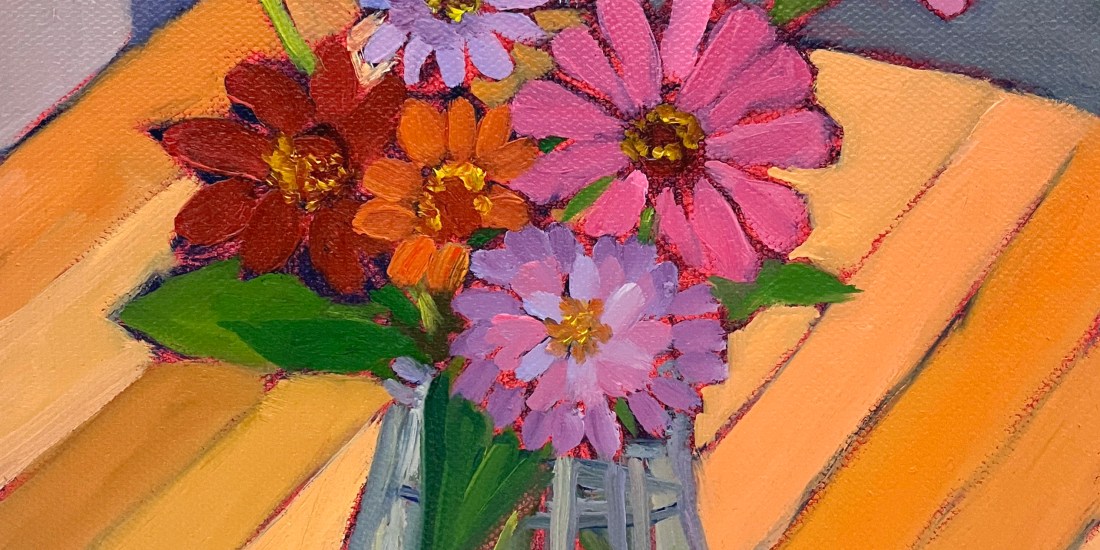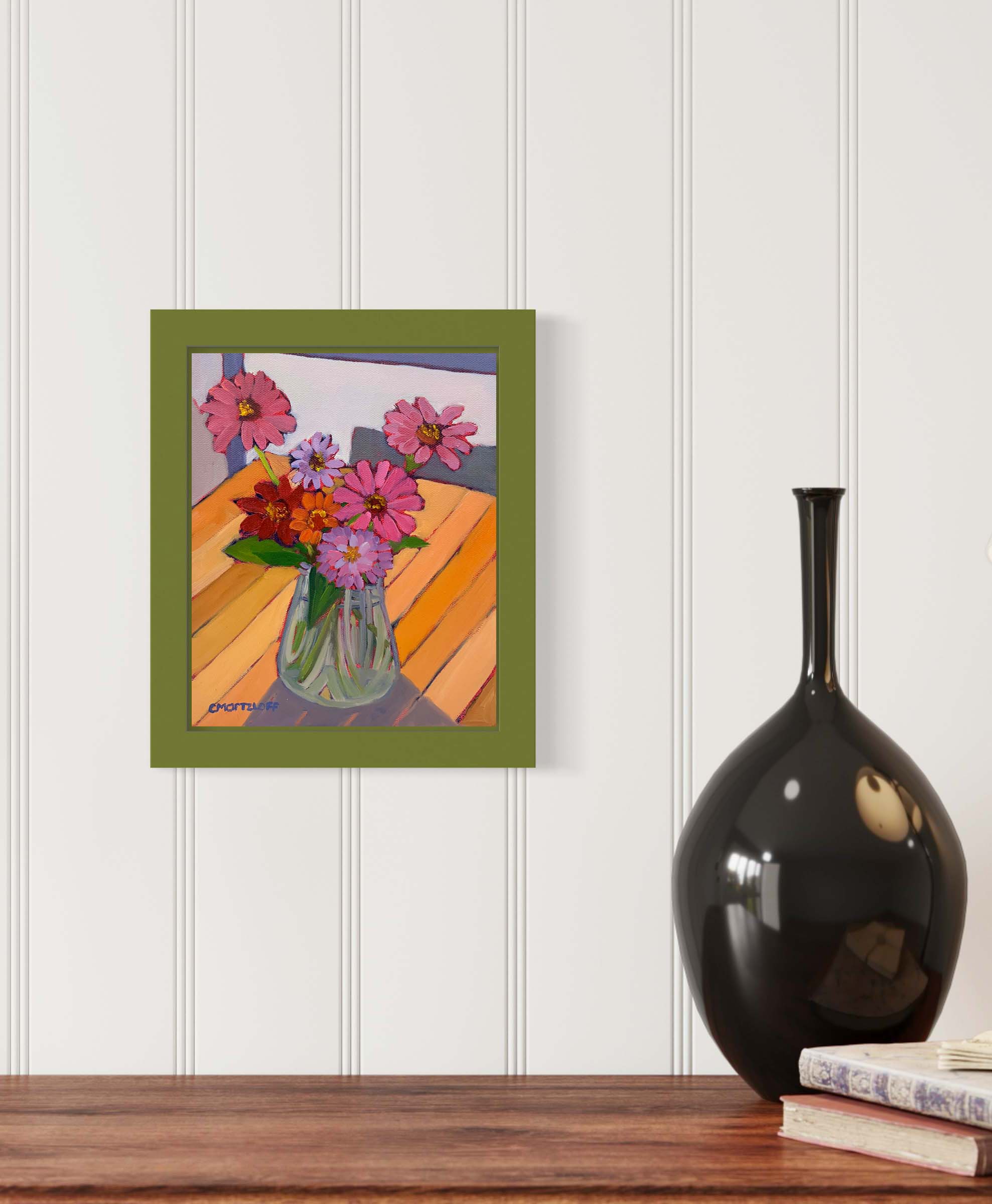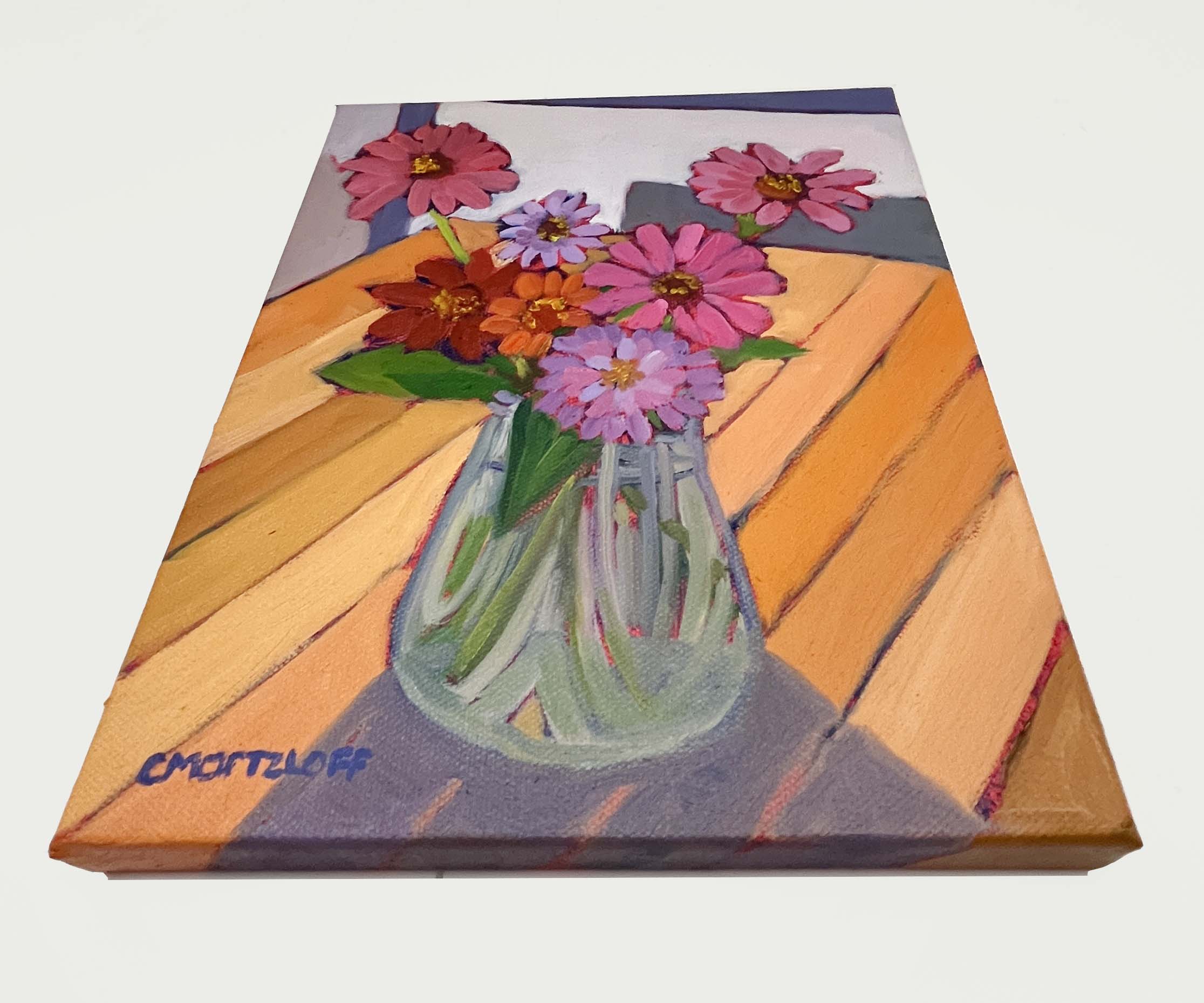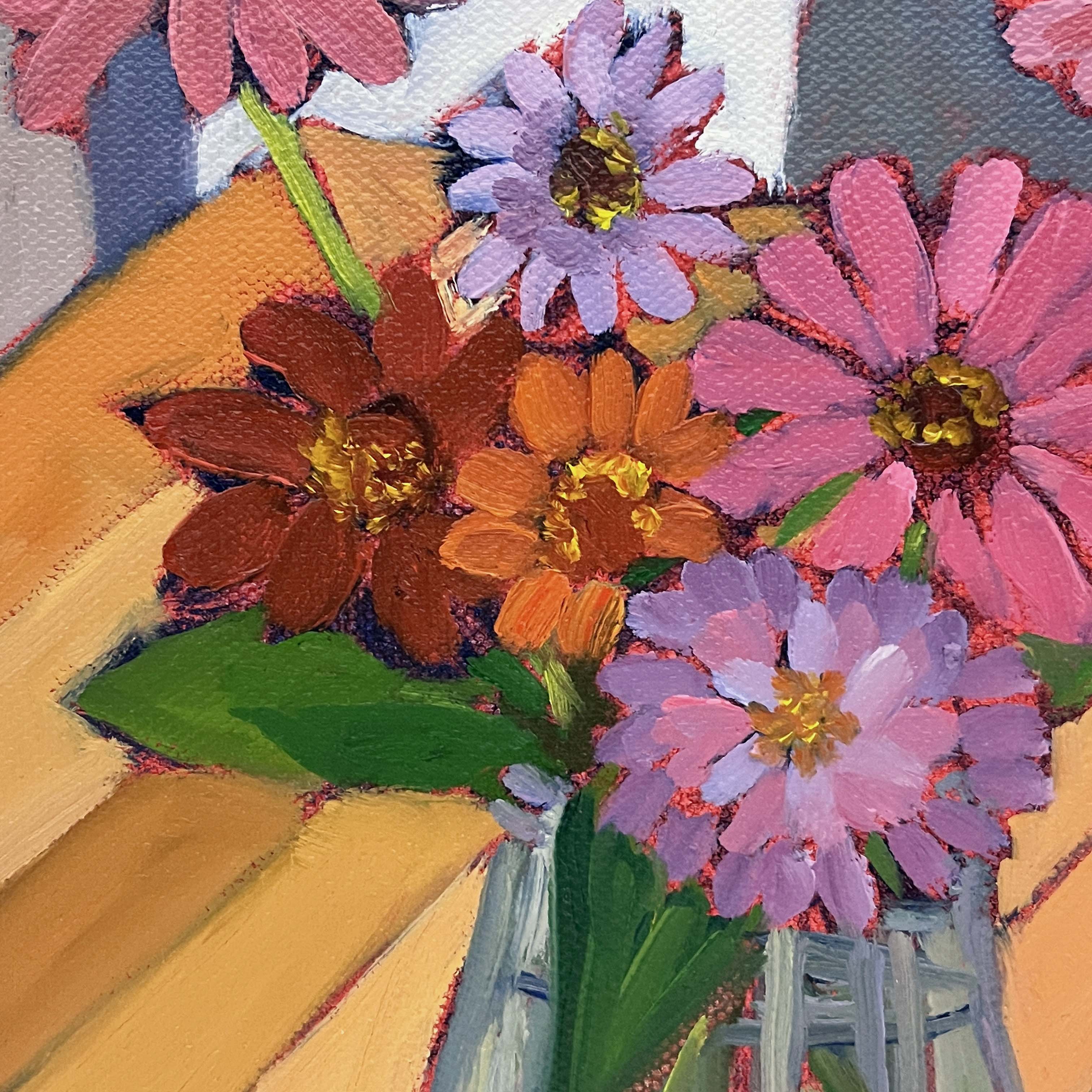 If this painting speaks to you, I invite you to spend a moment with the gallery below. Each view reveals a different detail—like catching the zinnias fresh in the light all over again.