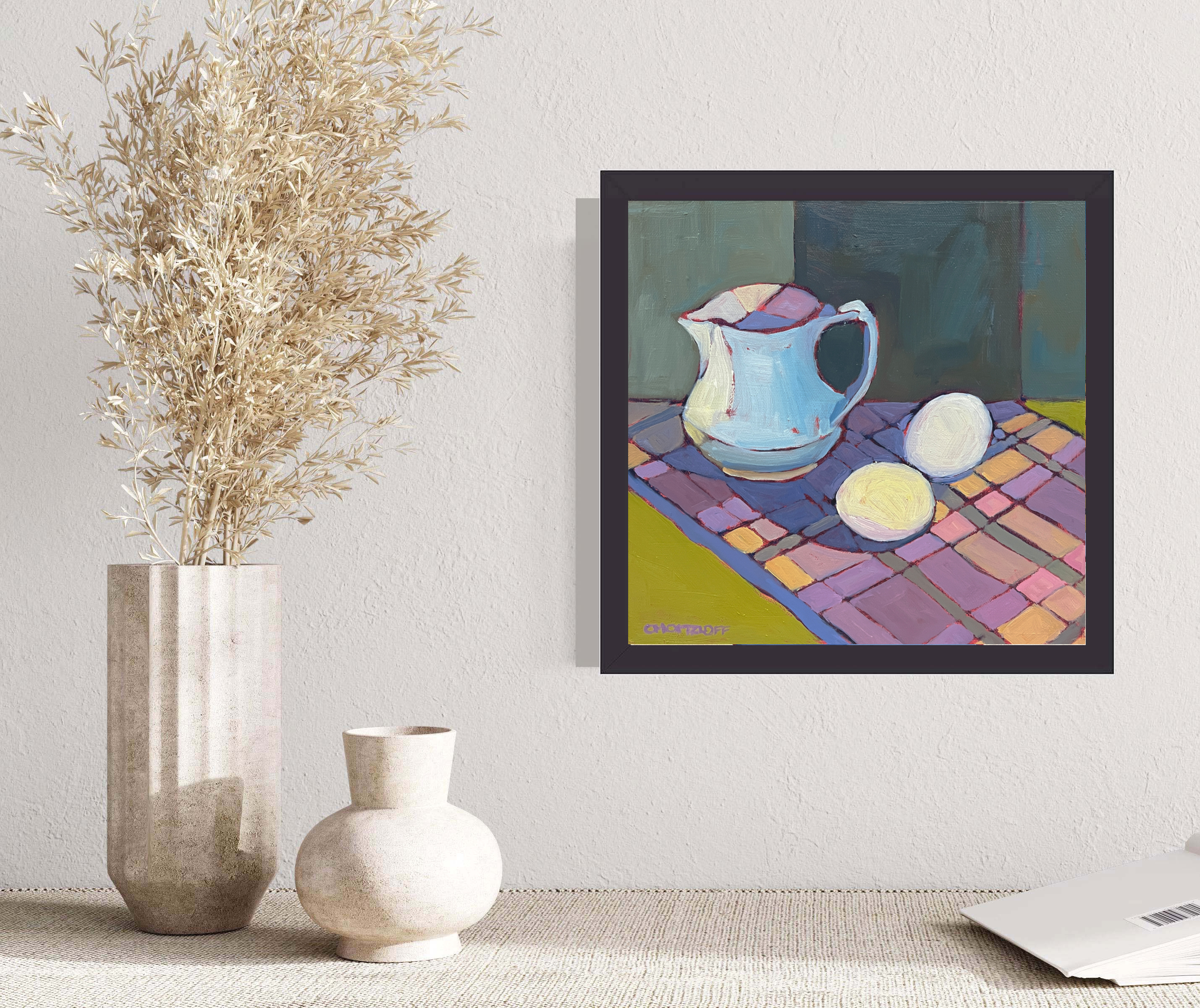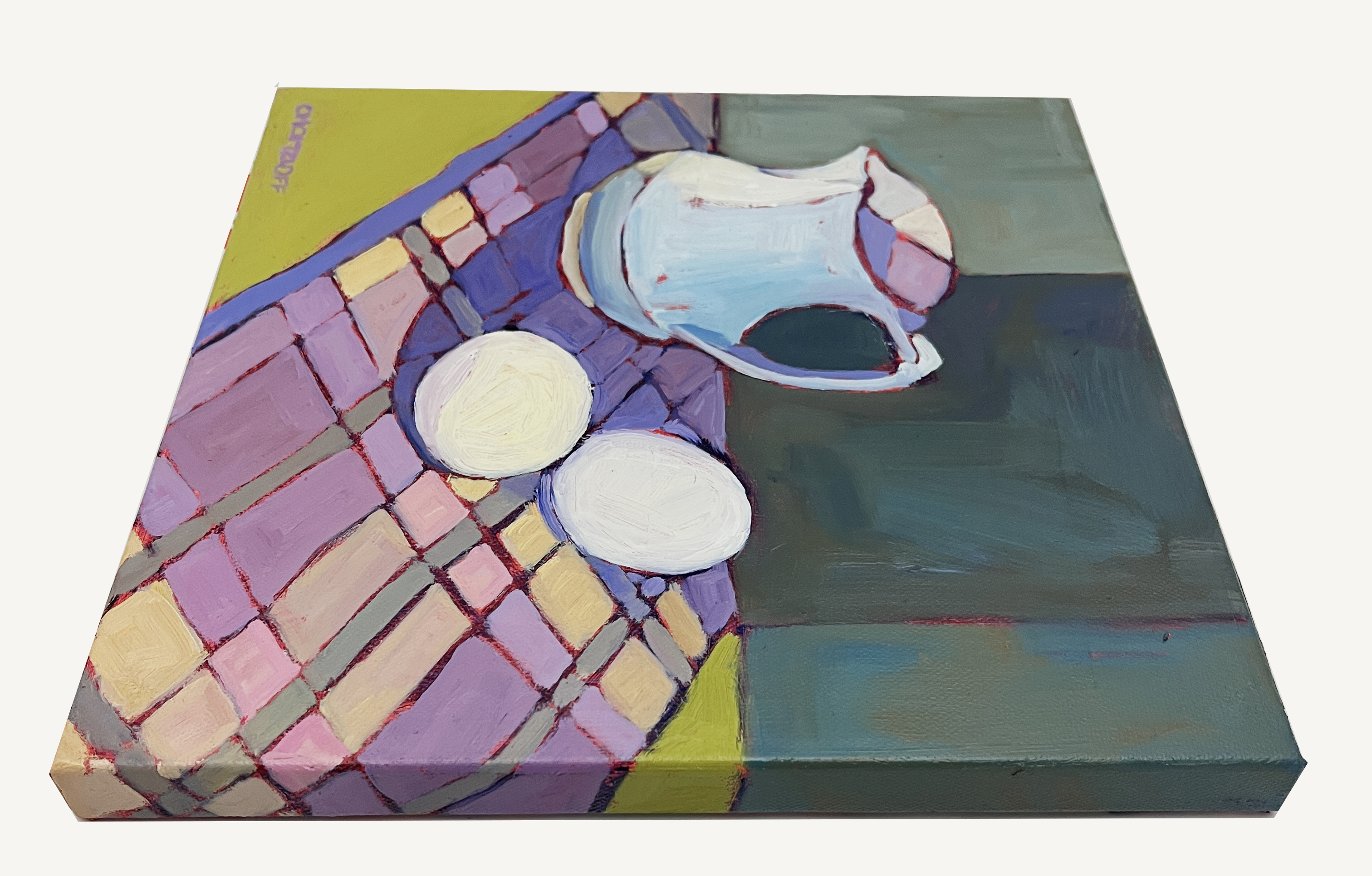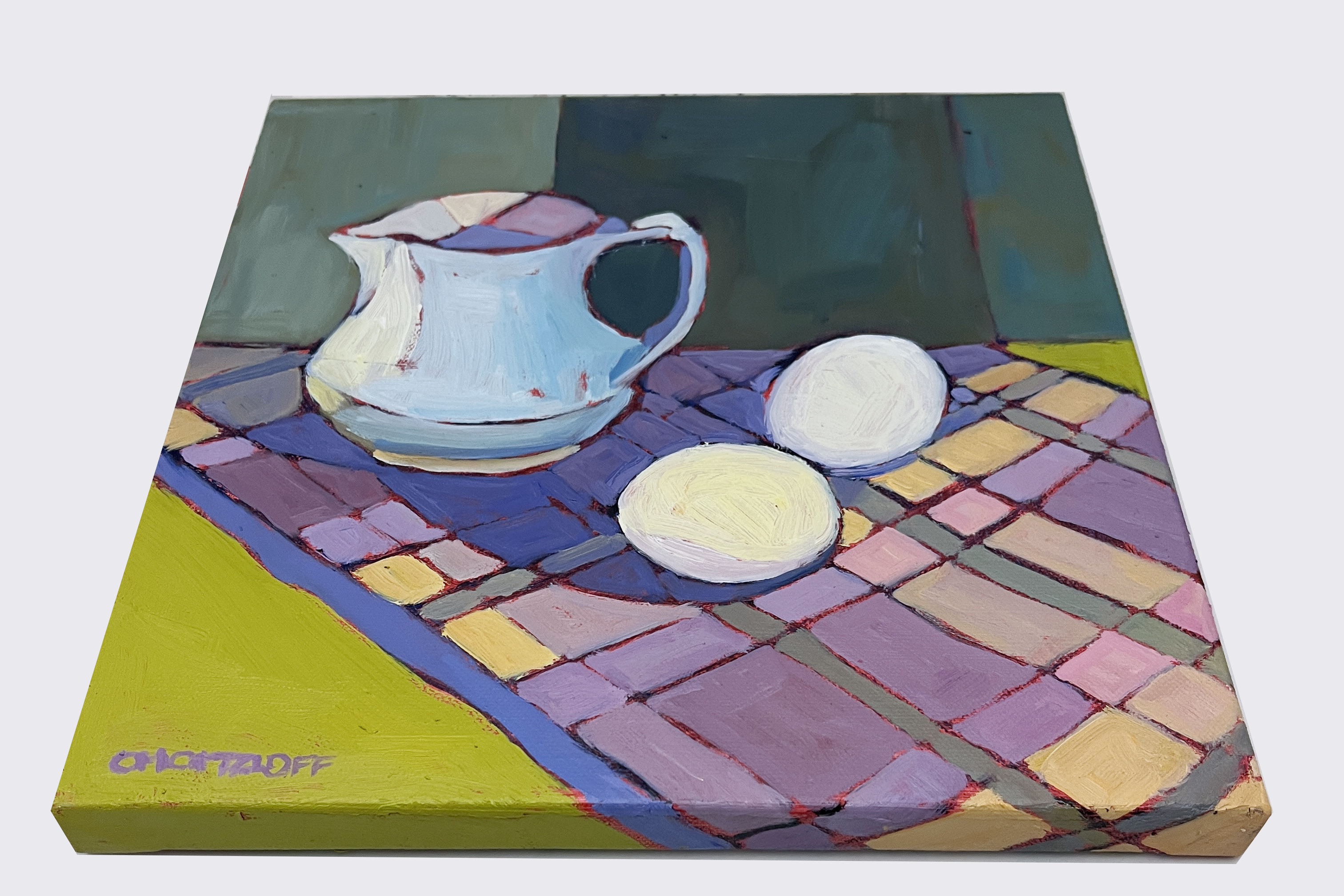 Violet Table with Pitcher – 10″ x 10″ Oil on canvas – $580
