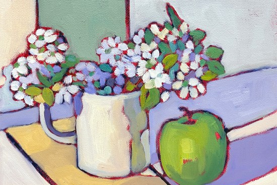 A springtime still life infused with the cheerful simplicity of freshly cut blossoms and a crisp green apple. The composition […]